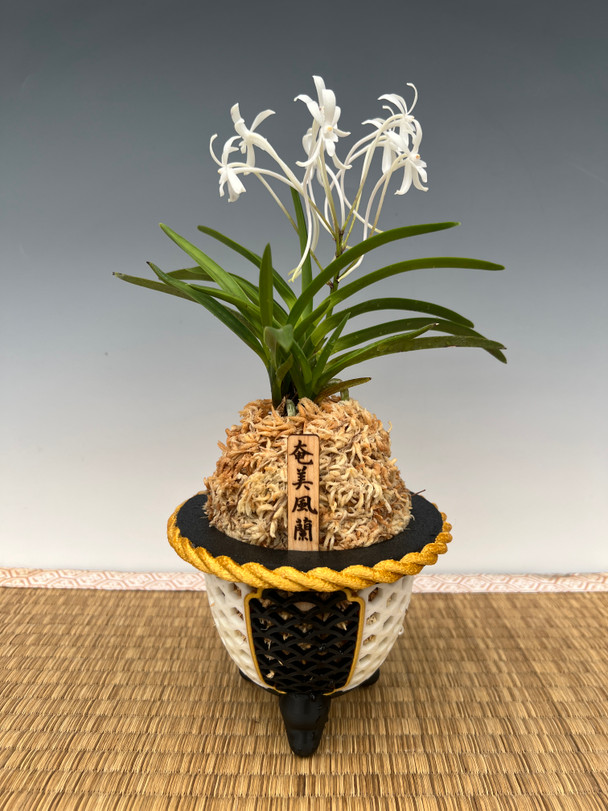 The beauty of Neofinetia falcata lies in the entire plant structure: the foliage, the moss mound, the root system, and the display container are all integral to its appreciation. In this class, we’ll even try hands-on moss-mounding techniques, as taught to Jason by his late mentor, Mr. Kunou of Shunjuen Nursery in Japan.