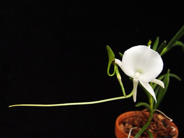 This is a nice compact species with white flowers and very long spurs.