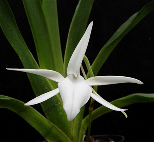 Jumellea major is the largest of the Jumelleas and can have leaves nearly 4 inches wide and 2 feet long when mature. Grows on palm trunks in nature. Not often seen!
