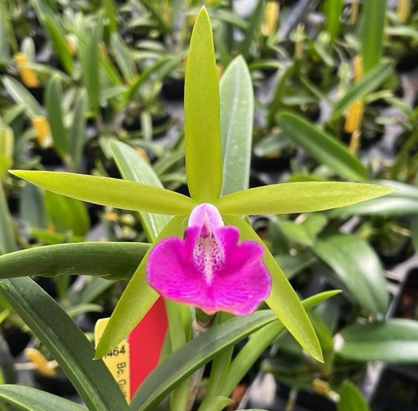 A strong contrast of colors on a compact plant! Being 1/2 nodosa makes this variety very easy to grow and a great plant for any experience level of orchid grower. Once these reach larger sizes, multiple growths can produce more than one flower spike at a time to create a great show! This is a must have plant for those who love nodosa hybrids!