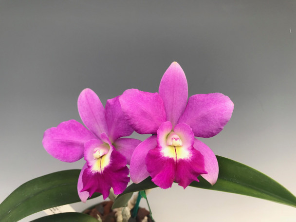 This is a beautiful pink to purple hybrid with a yellow center in the lip. Easy to grow and flower with good light. This particular clone can flower twice per year with 3-4 inch flowers that have a delightful fragrance like citrus.