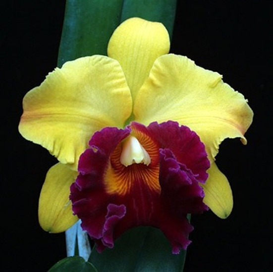 A superb yellow with good substance.The deep red-scarlet lip is large, wide and frilly. Nice citrus type fragrance.