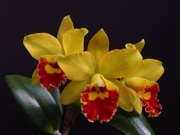 Nice compact unifoliate with 3-4 inch lemon yellow flowers with a bold red splash on the lip. Very fragrant with a citrus scent. These will be sent in flower as they have just popened as of 12/01/2013