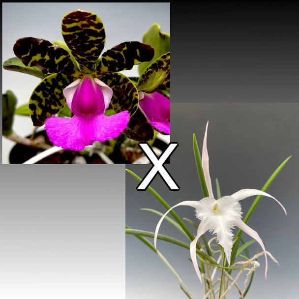 This exciting new hybrid combines the daytime fragrance of C. aclandiae with the evening fragrance of B. David Sanders. Flower colors are still to be discovered, but based on the parents, expect a range from pinks and purples to green-and-white tones. Variation is also seen in seedling size, as shown in the photos.
