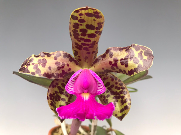 A superb remake of a cross made by sir C. Marriott in 1910. This particular one was made with the tetraploid clone of aclandiae called 'Kim'. This combined with the intense coloration of schilleriana var. sanderiana has created a superb cross with excellent offspring. The flowers are approx. 4 inches in size and are waxy with heavy substance and outstanding colors. The plants offered are now at least 10 years old and the supply is limited.