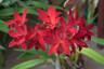 Fantastic brilliant 2" red flowers with a darker scarlet lip. These can have variable flowering times, but typically bloom in the spring and fall. These can produce up to 5 or more long-lasting flowers per spike. This clone grows into a compact specimen with several spikes as the plant gets larger.