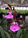 This great Encyclia hybrid is made up of a hybrid called Atroniceum which is a cross between (cordigera x phonecia). This was then back crossed on to the cordigera var. rosea. This particular offering is a sib cross of two select Nursery Rhymes. The flowers are very cordigera-like, with deep magenta purple lips and dark chocolate brown sepals and petals, but on free blooming growths that can have taller spikes and can branch on older plants. There is a chocolate fragrance and the flowers do last about 6 weeks or so. The plants have beautiful round glossy pseudobulbs.