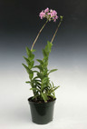 This hardy orchid hybrid blooms with bright pink flowers that last up to 4 months! As the lower flowers fade, the apex of the spike will continue to produce buds and new flowers over a long period of time. In addition, this is one of the few orchids that if acclimated over a few weeks, can take full outdoor sun. These can be grown in pots with bark or moss, and also do well mounted on slabs or trees outdoors if you have the right climate.