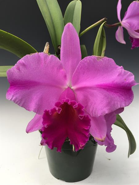 A large classical style Cattleya hybrid with splash petal markings. Sweet fragrance.