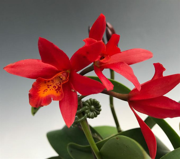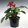 This unique hybrid has small deep red flowers that last for several weeks. Grow in medium to higher light and in intermediate to warm temperatures. Water as the mix approaches dryness when in bloom otherwise allow the potting mix to just dry between watering. This plant also loves to go outside in summer months.