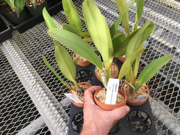 Rare color form with incredible splash petals and sepals. Here the cross is between two very select forms. The photos are of a splash-petaled type, but these will be far better with more color! These are from a really small area in Peru and the plants grow only on very tall old trees which are, of course, in demand for timber. These are seed-grown and not collected. These plants have been in our nursery for some time now and have acclimated to the Northern hemisphere. Very Limited