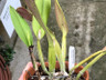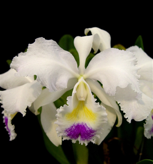 Very rare and collectible plant. This was originally a collected plant from the 1950s or earlier. Large white sparkling flowers with a distinct lip colored in white, yellow and dark magenta. Always blooms around Christmas. One of the best semi-albas around. Superb! The plant pictured in the last two photos is the actual plant you will be getting. It has 7 growths.