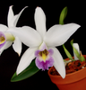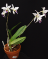 This is a cross of two of our best coerulea-type anceps. This Mexican species is very resilient and can take a wide range of temperatures. Flowering time is in the fall with long-lasting sprays of 3.5-5" flowers, colored in a steely white with indigo-colored lips. The flowers are also fragrant. These are plants from a 2011 crossing.