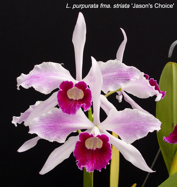 Seed grown plants from a cross we made in 2009. The striata x sanguinea cross result in similar patterns and colors to striata (flamea)with a fantastic fragrance. This is truly one of the best Brazilian species to grow due to its upright growth and tolerant habit. These have large 6-7”showy flowers, and have a lovely fragrance.