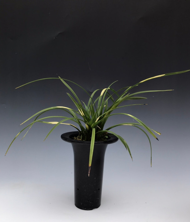 The traditional way to grow goeringii is using a fired earth product, also used in bonsai mixes, called 'Akadama' and 'Kanuma'. These are red and yellow fired earth granules. Typically, they are blended together, and segregated by granule size. Then they are planted in tall plastic Cymbidium pots, filling the pot from bottom to top in 1/3 increments of coarse, medium and small size clay mix. We do like using this mix when possible. Currently, our goeringii are being offered growing in New Zealand sphagnum moss. They will grow in a wide variety of mix including pine bark and coconut husk.