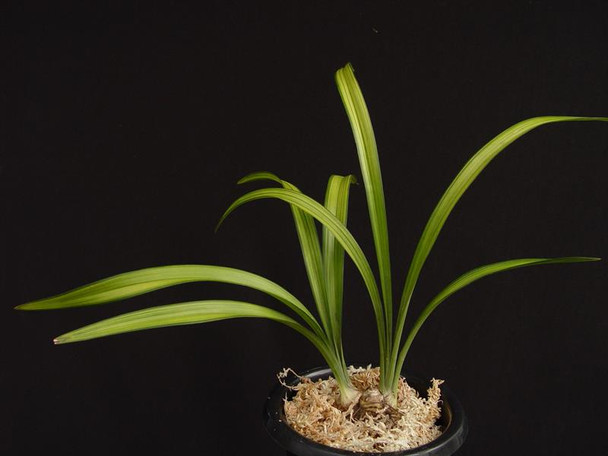 A wide-leaf type with multiple stripes. Flower color unknown.