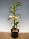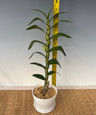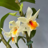 A nigro-hirsute (black hairs on the canes) Dendrobium hybrid with a light, sweet fragrance. It offers lovely color and an attractive presentation. The upright canes should be supported to prevent them from falling over.