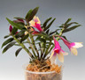 This fantastic, cute hybrid starts out as a miniature and can flower when quite small in size. After a few years though your will have a plant with growths that are 5-7" tall. The growths flower freely and the combination of these two species makes for an easy growing, easy flowering plant. The flowers last for months as cuthbertsonii flowers can last a year! This hybrid seems to flower off and on throughout the year. It can tolerate cool to warm temps and the flowers are about two inches long and an inch wide. Several flowers can develop on a single growth. These develop into fine specimens with lots of growths in 3 years. Not fragrant but worth the spectacle when flowering. We offer mature multi growth plants that have been in our collection for several years. Two sizes are available and there are only 6 of each size at this time. You can see this in the second photo. The left hand side plant (Size A) is the larger size with more growths. The right hand side plant (Size B) has less growths.
