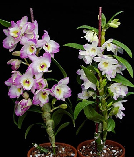 These orchids grow from spring until late fall, then stop and prepare to flower in the winter. During the late fall it is good to transition to cooler temperatures, watering less frequently and with no fertilizer in order to encourage blooming. Their canes are tall and usually require staking to keep them upright, as in nature they grow on the sides of trees with the canes drooping pendulously.