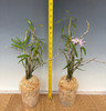 This compact and floriferous hybrid is over 50% Den. moniliforme in genetics. These seed-grown orchids bloom with colors varying from white, to yellow, to pink, depending on their individual genetics. The flowers emit a sweet fragrance with a hint of verbena. This hybrid often starts at a height of 8" and grows up to 16" tall.