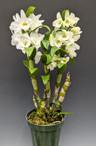 A lovely, classic hybrid originally registered in 1965! Lightly scented nobile Dendrobium hybrids host flowers along the sides of the canes, lasting about one month after opening. These bloom in the late winter to early spring, and require bright light to grow and flower best.