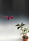 Non-fragrant, 3" velvety red/magenta flowers that last for 2-3 months. This plant can flower twice a year, in spring and fall. Grow in medium to high light, water as the mix just dries out. When in bloom, keep the potting medium more evenly moist. The height of the plant is 12-18" and the flower spikes are 12-14" long.