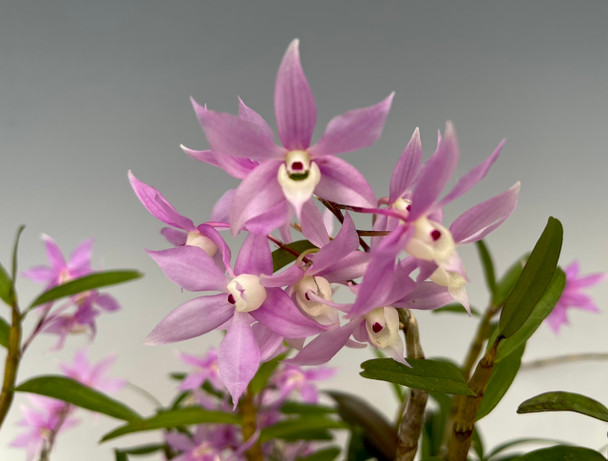 Divisions of one of our breeding plants. This species produces wonderful pink flowers with a fragrance of raspberries and cream. To others it is reminiscent of cotton candy. The plants we offer are specimen size with multiple growths. These are considered as miniature to compact plants. The plants offered are the exact ones photographed. They are in flower and some may have a few buds. They just opened as of 6/23/2022. Limited availability!