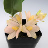 This miniature species is native to the islands of the Southwest Pacific, where it grows in mosses on trees and rocks. This beautiful, compact orchid blooms with clusters of 3/4" flowers that sparkle iridescently. The flowers can last for over three months under optimal conditions and the plant can flower up to twice per year with adequate culture. Unlike the wild type, this variety does not produce streaks of purple pigmentation throughout its leaves.