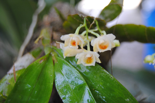 A rarely offered miniature Dendrobium species endogenous to Java. It produces a small cluster of yellowish-orange flowers from the top of its flat and narrow canes. This plant grows best in warm conditions with medium light.