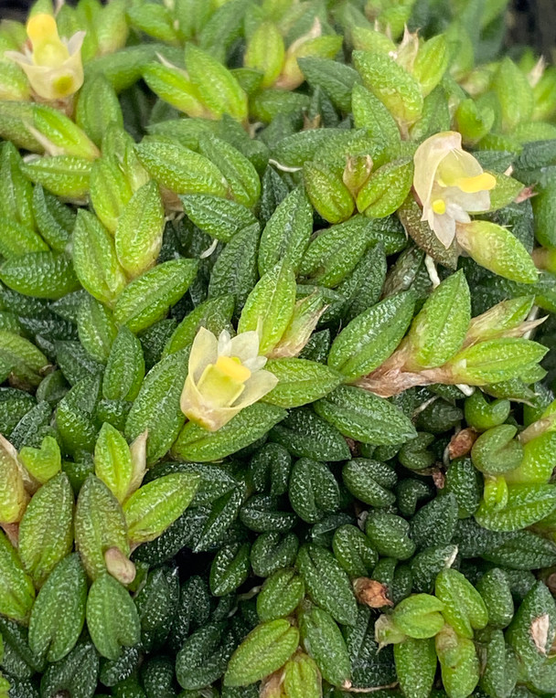 A true miniature! This wonderful species from Australia has textured succulent foliage that has alternating, tightly-packed leaves that turn red in high light. Over time, the plants form mats that completely colonize their mounts.
