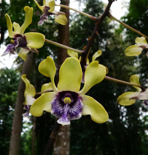 A native to Western New Guinea. This is a hot-growing Dendrobium which when mature can reach over 70 inches in height per cane! It is found in the wild as both an epiphyte and lithophyte, and does well in semi-shady conditions. Grow warm for faster results!