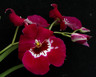 Reds with a red to burgondy waterfall pattern in the lip. 5" plus flowers that last from 4-6 weeks.