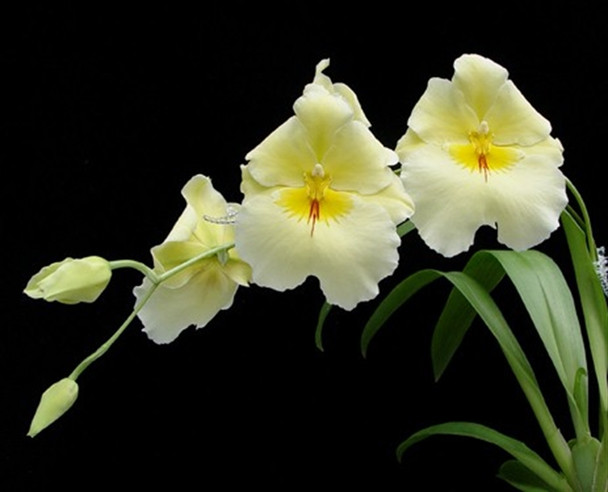 These are nice yellow colored Miltoniopsis, also known as the Pansy Orchid. The flowers are fragrant.