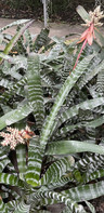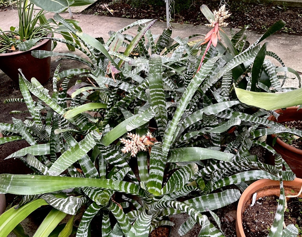 This species known as the Amazonian zebra plant is a very hardy easy-to-grow plant that does well in a medium size orchid bark mix, although often people in South Florida grow them in pro mix without any issues as well. These plants have beautiful zebra-striped spiky leaves that when grown in strong sunlight the darker green areas turn black. The flowers are colored in orange, red and yellow and flower for a long period of time.