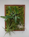 So how did I put this together? Starting with an empty picture frame, I attached a wire mesh to the back in order to give the plants something to hold onto. Next, I tied in specimen plants and decorative branches using wire and fishing line. After that, I stapled corrugated plastic board to the wire mesh from the back. The board acts as an insulating barrier between the damp plant layer and the wall. Last but not least, I glued decorative sheet moss and preserved lichen to fill in the remaining space. And voila, a one-of-one living wall frame!
