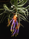 A large, high-light Tillandsia from Guatemala. The wavy leaves are densely covered in silvery trichomes that give it a velvety appearance, like a lion's mane. The plump, reddish-orange inflorences develop slowly to reveal violet-purple tubular flowers. This species develops over time into large clusters, densely packed.