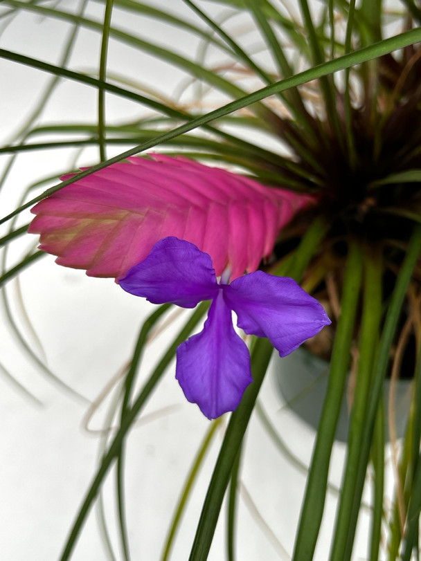 This species is an epiphytic plant that grows in rainforests on tree trunks, tree hollows, and sandy soils. This species is one of the most widely cultivated Tillandsia, similar to the well-known Tillandsia cyanea, but larger and more cold tolerant.