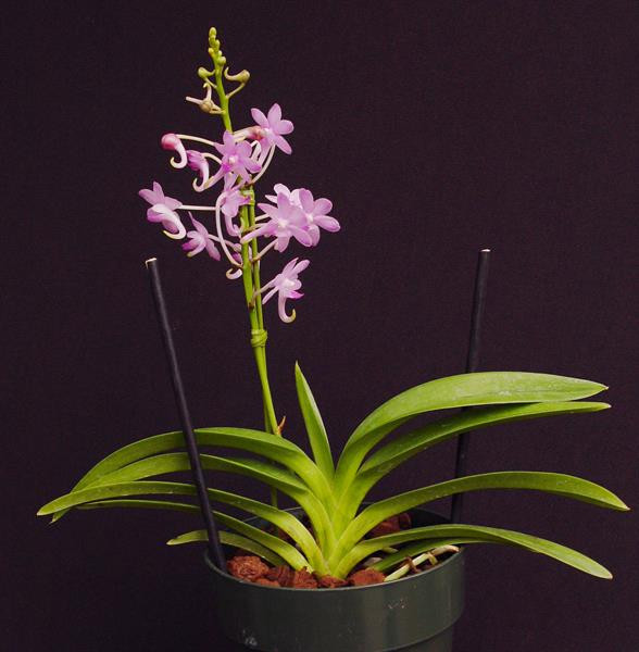 A new Neo hybrid with beautiful icy pink flowers that have an elephant trunk-like spur. Light and sweet fragrance. Nice flower presentation on spikes that are held up above the foliage. Two sizes available. Both blooming size.