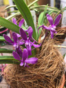 A Neofinetia cross with an unregistered 3rd generation Neo hybrid. This is a back cross which will create Neofinetia-like flowers with larger foliage. This is a seed grown plant with variable flowers. Most have been blooming pink, but some have been dark purple/red in color. You can see a couple examples of the colors in the photos. This current batch are growing in 4.5" clear plastic pots with New Zealand sphagnum moss.