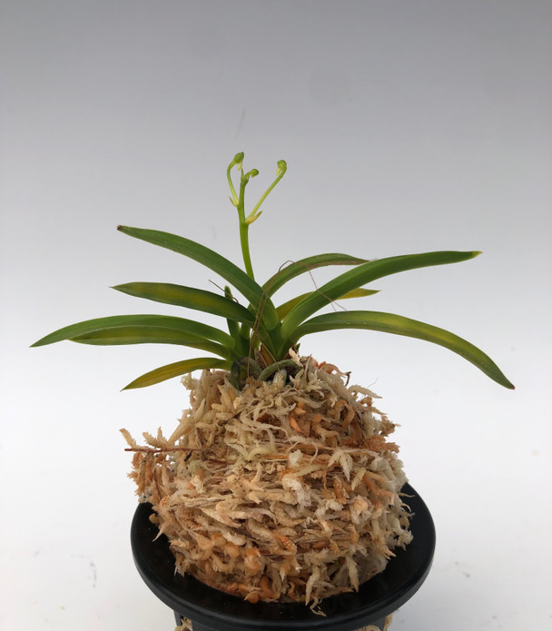 Two healthy growths in-spike freshly potted in moss. Actual plant in photo for sale.