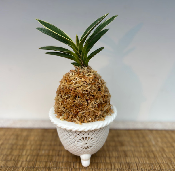 A compact Amami-line fūkiran prized for its refined leaf pattern and vibrant coloration. Thick, neatly arranged leaves display a crisp white fukurin margin washed with a delicate red blush—the “red crystal” effect that inspired its name. Considered top-grade variegation among collectors, this cultivar is both elegant and vigorous, often producing multiple offshoots once established.
