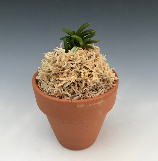 A very rare miniature bean leaf. This is the first division offering we have made after growing the main plant for over 10 years. It is not known for blooming, and is a slow, stable, steady grower. It is believed to be a mutation taken from 'Aoshinju' originally. In addition, it has no 'tsuke' (the connection point between the leaf and the axis). It it ever does flower, the flower should be similar to Aoshinju, which are small and fat with thick segments.