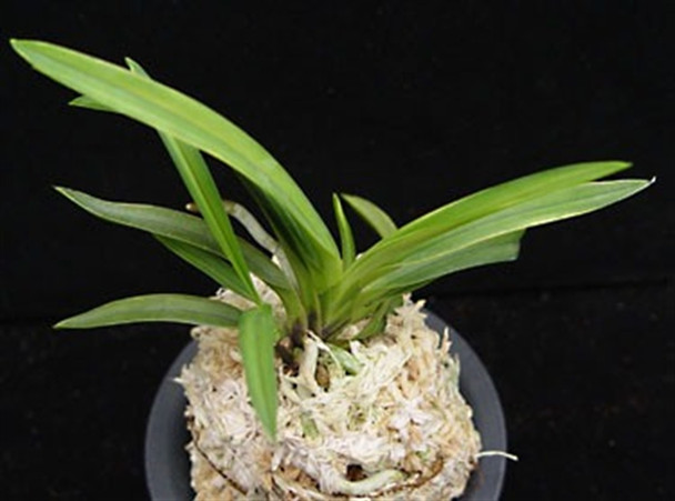 This variation of Neofinetia has slightly striped variegation on the leaves which gets more intense with maturity and higher light conditions.
