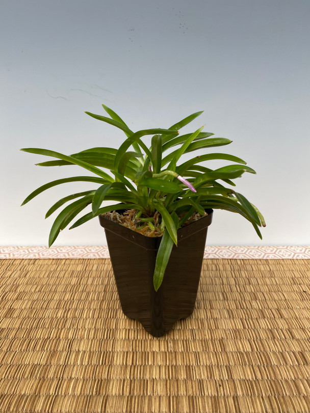A famous neofinetia for its pure white variegated top leaf and ruby root tip color. Although it is categorized as a ruby, the root tips are really a bright pink, and very attractive! The history of this plant has a fascinating story behind it. I (Jason Fischer) was visiting my Neofinetia mentor in Japan who told me he was the first person who obtained this plant, which was wild collected by a police officer friend of his when he was on a hike in the woods sometime in the 1980's. The first division he sold was valued at about $30,000. Since then, they have been produced from seed with the same foliage and root color. However, the original mother plant holds the largest leaves and is seldom available.