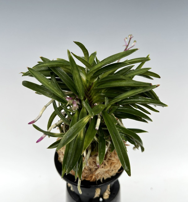 This 'Houmeiden' is a multi-growth plant (about 20+ growths of various sizes) and has a lighter white foliage, but is expressing nice and colorful ruby pink root tips that Houmeiden is well-known for. Currently is pushing out 4 flower spikes as of 4/11/23.