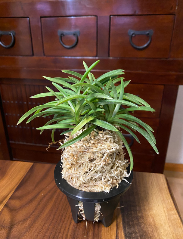 A classic Neofinetia variety with bright pink root tips.