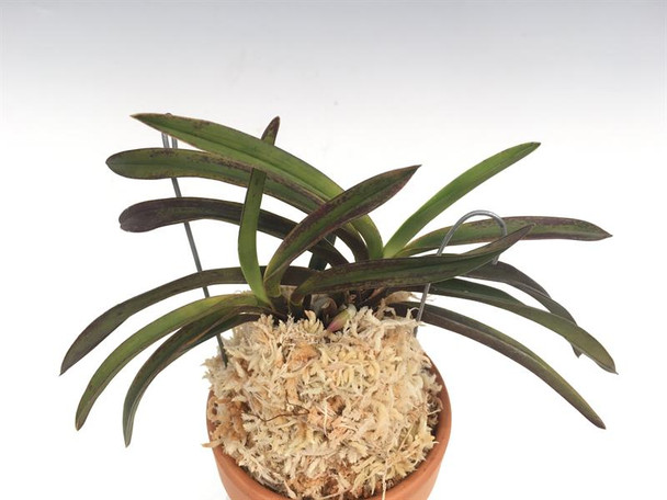 An interesting contrast on the leaves of a slight tiger style leaf with red pigment markings and pink/orange root tips. Only the upper two to three leaves have tiger markings. This Hououden is not a strong tiger variegation like some others are, but it is a robust plant.