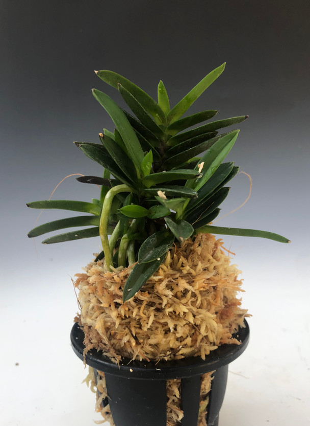 A variety that originally came from an Amami Island morph. Big and thick bean leaf with purple markings on the axis and the tips of the leaves. This is a larger and thick-leaved bean leaf with white flowers that have wider segmented petals. It really makes for a big show when mature.