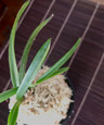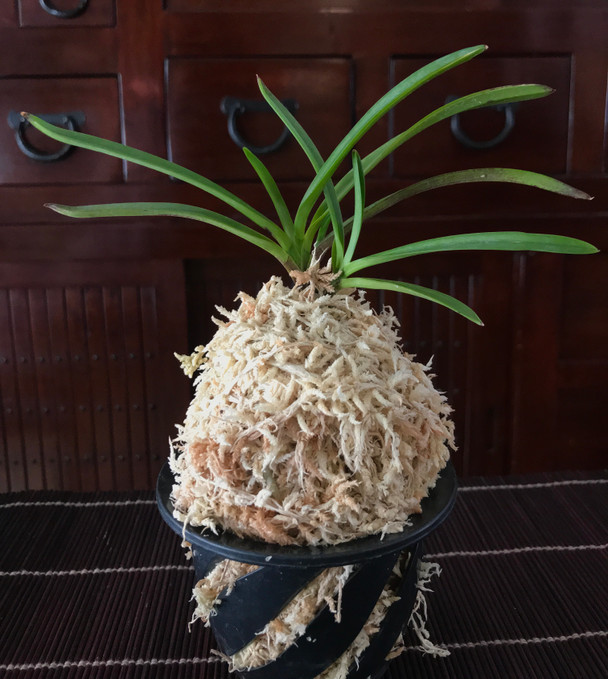 Kansetsu is a unique variety of Neofinetia. It produces fine white stripes of variegation often accompanied by specs of black and red along the sides of the leaves. It has also been known to produce a high flower count and we have seen them with up to 11 flowers on one inflorescens!