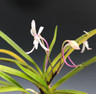 A slender-leaved ('Princess Leaf') Neofinetia variety that grows into a wide, fan-like form. Flowers on this variety are white with pink spurs and a light pink blush. Please note that this variety often has pale-colored foliage.